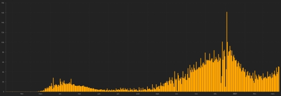 New York State: * Cases since the start of the epidemic (March 1, 2020): 1,874,285 cases (+8,758 cases in 24 hours, the day before (adjustment) * Healings: 1,040,527 healings (+12,834 in 24h) the day before (+11,695) Healing rate: 55.51% (+) * Death: 50,157 deaths (+64 in 24 hours), the day before (+376) Death rate: 2.67% (-) * Active cases 783,601 cases (-4,140 in 24 hours), the day before (adjustment) * Tests: 43,852,610 people tested since the first case. State of Massachusetts: * Cases since the start of the epidemic (February 1, 2020): 624,986 cases (+2,760 in 24 hours), the day before (+2,410) * Healings: 579,125 people healed (+1,987 in 24 hours), the day before (+1,666) Healing rate: 92.66% (-) * Death: 17,051 deaths (+41 in 24 hours), the day before (+40) Death rate: 2.72% (-) * Active cases (less deaths and recoveries): 28,810 cases (+732 in 24 hours), the day before (+704) * Tests: 18,420,376 people tested since the first case. Florida: * Cases since the start of the epidemic (March 1, 2020): 2,033,179 cases (+5,750 in 24 hours), the day before (+5,773) * Healings: 1,450,531 people healed (+12,193 in 24 hours), the day before (+15,330) Healing rate: 71.34% (+) * Death: 33,133 deaths (+158 in 24 hours), the day before (+101) Death rate: 1.62% (=) * Active cases (less deaths and recoveries): 549,515 cases (-6,601 in 24 hours), the day before (-9,658) * Tests: 24,928,986 people tested since the first case Miami Dade (FL): Cases since the start of the epidemic (March 12, 2020): 439,970 cases (+1,266 in 24 hours), the day before (+1,252) Deaths: 5,792 deaths (+25 in 24 hours), the day before (+16) Death rate: 1.31% (=) QUEBEC: Epidemiological situation: Cases confirmed since the first case (February 27, 2020): 306,385 cases (+950 in 24 hours), the day before (+945) Healing: 288,384 people (+752 in 24 hours), the day before (+686) Death: 10,637 deaths (+7 in 24 hours), the day before (+4) Active cases: (excluding death and recovery) 7,364 cases (+191 in 24 hours), the day before (+255) Hospitals: 481 people hospitalized (-15 in 24 hours) the day before (-12) Intensive care: 115 people (-2 in 24 hours), the day before (-1)
