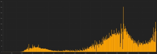 Vaccination: 710.09 million doses of vaccine injected (32.31 million doses injected in 48 hours (updated April 7, 2021, latest data available). TOP 5 countries with the most active cases: (less deaths and recoveries) 1st - USA: 6,857,855 cases, (-10,102 in 24 hours), the day before (-1,175) 2nd - France: 4,480,406 cases (update not available), the day before (6,401) 3rd * - Brazil: 1,191,776 cases (-18,134), the day before (-43,937) 4th * - India: 910,289 cases (+66,847 in 24 hours), the day before (+55,249) 5th * - Belgium: 826.343 cases (+3.375 in 24 hours), the day before (+1.575) TOP 5 countries with the most deaths: 1st - USA: 572,849 deaths (+2,589 in 24 hours), the day before (+978) 2nd * - Brazil: 341,097 deaths (+3,733 in 24 hours), the day before (+4,211) 3rd * - Mexico: 205,598 deaths (+596 in 24 hours), the day before (+603) 4th * - India: 166,892 deaths (+684 in 24 hours), the day before (+631) 5th * - United Kingdom: 126,927 deaths, (+45 in 24 hours), the day before (+20) TOP 5 countries with the highest number of healings: 1st - USA: 24,206,539 healings (+84,318 in 24 hours), cure rate 76.51% (+) 2nd * - India: 11,851,393 cures (+59,258 in 24 hours), cure rate 91.66% (-) 3rd * - Brazil: 11,664,158 healings (+ 105,374 in 24 hours), cure rate 88.38% (+) 4th * - Russia: 4,239,038 healings (+9.558), cure rate 91.85% (+) 5th * - United Kingdom: 3,932,777 cure (+10,514 in 24h), cure rate 90.05% (+) DIASPORA: USA: * Case since the first case (March 9, 2020): 31,637,243 cases (+76,805 in 24 hours), the day before (+63,462) * Healings: 24,206,539 healings (+84,318 in 24 hours), the day before (+63,659) National Healing Rate: 76.51% (+) * Death: 572,849 deaths (+2,589 in 24 hours), the day before (+978) * Active cases (less deaths and recoveries): 6,857,855 cases, (-10,102 in 24 hours), the day before (-1,175) Canada: Cases since the start of the epidemic (January 25, 2020): 1,035,242 cases (+7,388 in 24 hours), the day before (+10,724) Healings: 950,990 people (+5,440 in 24 hours), the day before (+8,147) National Healing Rate: 91.86% (-) Deaths: 23,160 deaths (+28 in 24 hours), the day before (+49) National death rate: 2.23% (-) Active cases: (excluding death and recovery) 61,092 (+1,920 in 24 hours), the day before (+2,528) Vaccination: 6.99 million doses of vaccine injected (+430,000 doses injected in 48 update of April 7, 2021 last available data), since December 14, 2020 date of the first injection in Canada. Canada: Number of daily confirmed cases