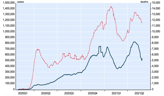 New cases in blue numbers on the left - New deaths in red numbers on the right France: * Cases confirmed since the first case (January 24, 2020): 5,646,897 cases (+11,268 cases in 24 hours), the day before (+13,933) * Healings: 5,303,714 people (+19,450), the day before (+17,661) National Healing Rate: 93.92% (+) Death: 109,190 (+125 in 24 hours in hospitals +0 in EMS / EHPAD), the day before in total, (+142) * Active cases: (excluding death and recovery) 233.893 (-8.307), the day before (-3.870) Latin America and the Caribbean active cases (less deaths and recoveries): * Brazil: 1,122,220 cases (+23,103 in 24 hours), the day before (+12,287) * Argentina: 372,886 cases (+5,280 in 24 hours), the day before (+2,347) * Mexico: 261,966 cases (+411 in 24 hours), the day before (+886) * Peru: 157,912 cases (+5,339 in 24 hours), the day before (+4,627) * Colombia: 133,472 cases (+2,362 in 24 hours), the day before (+2,154) Dominican Republic: 47,050 cases (+1,135 in 24 hours) the day before (+699) * Chile: 44,649 cases (+3,296 in 24 hours), the day before (+2,378) * Ecuador: 36,332 cases (+785 in 24 hours), the day before (+1,053) * Jamaica: 22,649 cases (-68 in 24 hours), the day before (-77) * Guadeloupe: 14,059 cases (unavailable 7th day), the day before (unavailable) * French Guiana: 13,652 cases (+154 in 24 hours), the day before (+228) * Martinique: 11,767 cases (unavailable 3rd day), the day before (+ unavailable) * Cuba: 6,505 cases (-106 in 24 hours), the day before (-231) * Panama: 6.192 cases (+134 in 24 hours), the day before (+97) Haiti: 1,424 cases (+109 in 24 hours), the day before (+79) * Bahamas: 952 cases (+59 in 24 hours), the day before (-81) HAITI: Epidemiological situation: According to the Ministry of Public Health, 130 new cases of Covid-19 were confirmed in Haiti on 23 May 2021 (latest partial data available) for a total of 14,258 cases confirmed throughout the national territory since the first case (March 19, 2020 https://www.haitilibre.com/en/news-30319-haiti-health-origin-of-the-first-2-cases-of-covid-19-in-haiti.html). Last update (91 new cases on May 22, 2021) Healings: 12,527 people (+17 in 24 hours) Healing rate: 87.85% (-) Deaths: 307 deaths, (+5 in 24 hours) Mortality rate: 2.15% (+) Active cases: (less deaths and recoveries) 1,424 cases (+109 in 24 hours), the day before (+79) Imported cases: 152 cases since the reopening of airports and +43 since the last report dated July 9 (109 cases) https://www.haitilibre.com/en/news-31348-haiti-flash-152-cases-imported-since-the-reopening-of-airports.html (Since then, this information is no longer made available) Suspected cases since March 19: 66,181 cases (+352 in 24 hours) update May 23, latest data available. Cases tested since the start of the pandemic: 70,407 cases (+528 in 24 hours) update 23 May, latest data available. Note that the very low number of people tested does not statistically make it possible to make a representative estimate of the cases of Covid-19 in Haiti. People hospitalized: 662 since the start of the epidemic (+8 in 24 hours) Update 23 May 2021, latest data available. People in intensive care: (not available) Person in isolation: 1,423 as of May 22 (latest data available) People currently treated at home: 1,883 as of May 22, latest data available). Cases confirmed by department: West: 10,186 (+95) North: 881 (+9) Center: 750 (+10) Artibonite: 729 (+8) North-East: 388 (+2) South-East: 311 (unchanged) South: 306 (unchanged) North-West: 297 (+4) Grand'Anse: 245 (+2) Nippes: 165 (unchanged) UNITED STATES: Epidemiological situation: United States: * Case since the first case (March 9, 2020): 34,022,657 cases (+22,977 in 24 hours), the day before (+28,473) * Healings: 27,767,040 healings (+65,161 in 24 hours), the day before (+39,611) National Healing Rate: 81.61% (+) * Death: 608,961 deaths (+1,235 in 24 hours), the day before (+1,547) National death rate: 1.78% (=) * Active cases (less deaths and recoveries): 5,646,656 cases, (-43,419 in 24 hours), the day before (-12,685) * Tests: 478,141,417 people tested since the first case. USA: Number of daily confirmed cases: