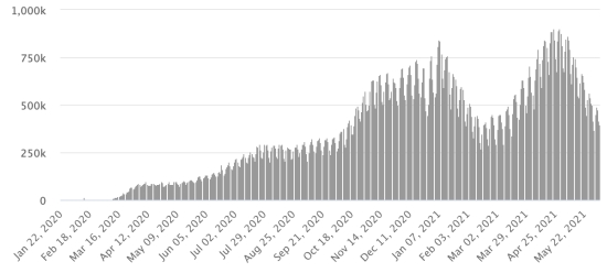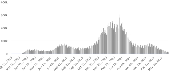 Vaccination: 299.12 million doses of vaccine injected since December 14, 2020, the date of the first injection in the United States (+1.4 million doses injected, in 24 hours). Updated 4 June 2021 last available data). New York State: * Cases since the start of the epidemic (March 1, 2020): 2,158,162 cases (+916 in 24 hours), the day before (+976) * Healings: 1,752,988 healings (+9,043 in 24 hours) the day before (+6,544) Healing rate: 81.22% (+) * Death: 53,715 deaths (+9 in 24 hours), the day before (+52) Death rate: 2.48% (=) * Active cases 351,459 cases (-8,136 in 24 hours), the day before (-5,620) * Tests: 56,505,239 people tested since the first case. New York State: Number of daily confirmed cases: