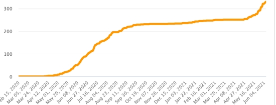 According to the Ministry of Public Health, 141 new cases and +3 deaths in 24h (previous 319 cases in 48 hours) would have been confirmed on June 4, 2021 for a total 15,895 and 333 deaths since the start of the pandemic. As of June 4, this brings the number of new cases to 2,572 (+ 5.8%) and 68 deaths (+3) since the start of the 3rd wave (early May) (latest data provided available by the Ministry). For reference in April 2021 (pre-3rd wave) 267 new cases and 9 deaths. had been recorded. Cases confirmed by department : West: 11,418 (+91) North: 958 (+9) Center: 824 (+1) Artibonite: 781 (+4) North-East: 433 (+14) South-East: 366 (+3) South: 346 (+7) Northwest: 303 (unchanged) Grand'Anse: 297 (+12) Nippes: 169 (unchanged) Haiti : Active case since the start of the pandemic (less healings and deaths) :