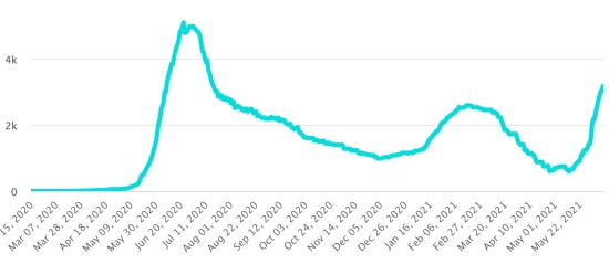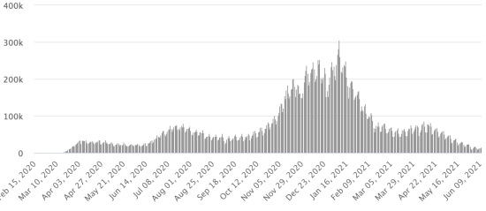 Imported cases: 152 cases since the reopening of airports and +43 since the last report dated July 9, 2020 (109 cases) https://www.haitilibre.com/en/news-31348-haiti-flash-152-cases-imported-since-the-reopening-of-airports.html (Since then, this information is no longer made available) Cases tested since the start of the pandemic: 78,029 cases (+546 in 24 hours) update 6 June 2021 (latest data available). Note that the very low number of people tested does not statistically make it possible to make a representative estimate of the cases of Covid-19 in Haiti. By way of comparison, our Dominican neighbors carried out in total as of June 8, 2021 more than 1.6 million tests (1,601,470) Cases confirmed by department: West: 11,553 (+61) North: 964 (+1) Center: 837 (+13) Artibonite: 784 (unchanged) North-East: 446 (+1) South-East: 375 (+2) South: 351 (unchanged) Northwest: 303 (unchanged) Grand'Anse: 297 (unchanged) Nippes: 169 (unchanged) UNITED STATES: Epidemiological situation: United States: * Case since the first case (March 9, 2020): 34,275,783 cases (+11,056 in 24 hours), the day before (+21,861) * Healings: 28,278,394 healings (+24,303 in 24h), the day before (+33,228) National Healing Rate: 82.50% (+) * Death: 614,007 deaths (+513 in 24 hours), the day before (+442) National death rate: 1.79% (=) * Active cases (less deaths and recoveries): 5,383,382 cases, (-13,760 in 24 hours), the day before (-11,809) * Tests: (491,878,084) people tested since the first case. USA: Number of daily confirmed cases: