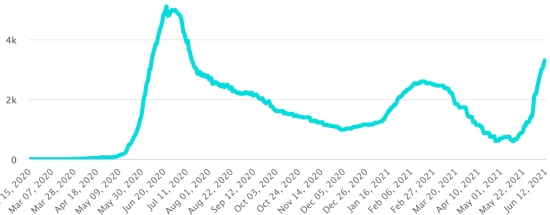 Imported cases: 152 cases since the reopening of airports and +43 since the last report dated July 9, 2020 (109 cases) https://www.haitilibre.com/fben.php?id=31348 (Since then, this information is no longer made available) Cases tested since the start of the pandemic: 78,419 cases (+390 in 24 hours) update June 7, 2021 (latest data available). Note that the very low number of people tested does not statistically make it possible to make a representative estimate of the cases of Covid-19 in Haiti. By way of comparison, our Dominican neighbors carried out in total as of June 10, 2021 more than 1.6 million tests (1,612,174) Cases confirmed by department: West: 11,642 (+89) North: 966 (+2) Center: 842 (+5) Artibonite: 786 (+2) North-East: 453 (+7) South-East: 377 (+2) South: 357 (+6) Northwest: 303 (unchanged) Grand'Anse: 307 (+10) Nippes: 173 (+4) UNITED STATES: Epidemiological situation: United States: * Case since the first case (March 9, 2020): 34,315,873 cases (+9,427 in 24 hours), the day before (+30,663) * Healings: 28,381,623 healings (+35,299 in 24h), the day before (+67,930) National Healing Rate: 82.70% (+) * Death: 614,955 deaths (+217 in 24 hours), the day before (+731) National death rate: 1.79% (=) * Active cases (less deaths and recoveries): 5,319,295 cases, (-26,089 in 24 hours), the day before (-37,998) * Tests: 493,894,853 people tested since the first case. USA: Number of daily confirmed cases: