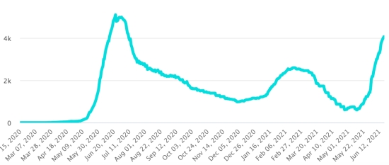 According to the Ministry of Public Health, 191 new cases and 4 deaths (West Dept.) in 24 hours of Covid-19 have been confirmed in Haiti as of June 15, 2021 (latest partial data available) for a total of 17,239 cases and 373 deaths since the start of the pandemic. 3rd wave : As of June 14 the total of the 3rd wave (49 days) was 3,916 confirmed cases (+ 5.12%) and 108 deaths (+ 3.8%). For reference in April 2021 preceding the start of the 3rd wave of Covid the toll for the month stood at 267 new cases and 9 deaths.. Cases confirmed by department : West: 12.402 (+185) North: 1.009 Center: 885 Artibonite: 813 North-East: 484 (+6) South-East: 398 South: 407 North-West: 311 Grand'Anse: 342 Nippes: 188 Situation Department of the West : The main communes affected in 2021 are : Delmas 1,465 cases (+55 in 24 hours), Pétion ville 1,322 cases (+44 in 24 hours), Port-au-Prince 774 cases (+26 in 24h), Tabarre 644 cases (+18 in 24h), Croix-des-Bouquet 568 cases (+23 in 24h) and Carrefour 306 (+14 in 24h). Haiti: Total active cases since the start of the pandemic: