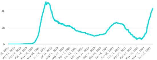 Cases tested since the start of the pandemic: 85,122 cases (+1,835 in 48 hours) update June 18, 2021 (latest data available). Note that the very low number of people tested does not statistically make it possible to make a representative estimate of the cases of Covid-19 in Haiti. By way of comparison, our Dominican neighbors carried out in total as of June 20, 2021 more than 1.66 million tests (1,667,342) Cases confirmed by department: West: 12,688 (+209) North: 1.017 (+5) Center: 912 (+12) Artibonite: 829 (+16) North-East: 499 (+15) South-East: 415 (+11) South: 460 (+22) North-West: 321 (+10) Grand'Anse: 371 (+28) Nippes: 199 (+11) UNITED STATES: Epidemiological situation: United States: * Case since the first case (March 9, 2020): 34,419,838 cases (+13,837 in 24 hours), the day before (+4,289) * Healings: 28,767,507 healings (+56,192 in 24 hours), the day before (+16,472) National Healing Rate: 83.57% (+) * Death: 617,463 deaths (+297 in 24 hours), the day before (+83) National death rate: 1.79% (=) * Active cases (less deaths and recoveries): 5,034,868 cases, (-42,652 in 24 hours), the day before (-12,266) * Tests: 500,148,116 people tested since the first case. USA: Number of daily confirmed cases: