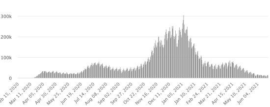 Cases tested since the start of the pandemic: 86,536 cases (+738 in 48 hours) update June 21, 2021 (latest data available). Note that the very low number of people tested does not statistically make it possible to make a representative estimate of the cases of Covid-19 in Haiti. By way of comparison, our Dominican neighbors carried out in total as of June 23, 2021 more than 1.68 million tests (1,680,956) Cases confirmed by department: West: 12.864 (+70) North: 1.025 (+6) Center: 926 (+14) Artibonite: 884 (+20) North-East: 517 (+1) South-East: 429 (+14) South: 483 (+21) North-West: 337 (+10) Grand'Anse: 404 (+13) Nippes: 204 (+2) UNITED STATES: Epidemiological situation: United States: * Case since the first case (March 9, 2020): 34,464,956 cases (+15,952 in 24 hours), the day before (+14,201) * Healings: 28,871,914 healings (+25,610 in 24h), the day before (+29,170) National Healing Rate: 83.77% (+) * Death: 618,685 deaths (+391 in 24 hours), the day before (+419) National death rate: 1.79% (=) * Active cases (less deaths and recoveries): 4,974,357 cases, (-10,049 in 24 hours), the day before (-15,388) * Tests: 502,180,123 people tested since the first case. USA: Number of daily confirmed cases: