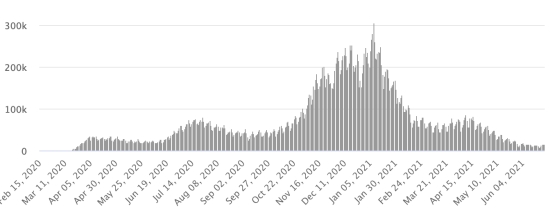 Cases tested since the start of the pandemic: 87,360 cases (+824 update 22 June 2021 (latest data available). Note that the very low number of people tested does not statistically allow an estimate to be made representative of the cases of Covid-19 in Haiti. By comparison, our Dominican neighbors carried out in total as of June 23, 2021 more than 1.68 million tests (1,685,706) Cases confirmed by department: West: 12.926 (+62) North: 1.052 (+27) Center: 930 (+4) Artibonite: 890 (+6) North-East: 524 (+7) South-East: 434 (+5) South: 504 (+21) North-West: 337 Grand'Anse: 410 (+6) Nippes: 205 (+1) UNITED STATES: Epidemiological situation: United States: * Case since the first case (March 9, 2020): 34,482,672 cases (+17,716 in 24 hours), the day before (+15,952) * Healings: 28,897,460 healings (+25,546 in 24 hours), the day before (+25,610) National Healing Rate: 83.80% (+) * Death: 619,152 deaths (+467 in 24 hours), the day before (+391) National death rate: 1.79% (=) * Active cases (less deaths and recoveries): 4,966,060 cases, (-8,297 in 24 hours), the day before (-10,049) * Tests: 503,006,392 people tested since the first case. USA: Number of daily confirmed cases: