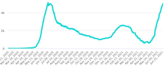 Active cases: (less deaths and recoveries) 4,997 cases (+118 in 24 hours), the day before (+138) Haiti: Number of active cases since the start of the pandemic: