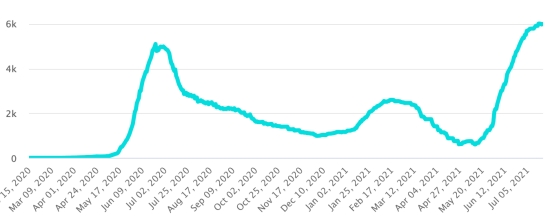 Active cases: (less deaths and recoveries) 5,993 cases (+22 in 24 hours), previous (+63 in 48 hours) Haiti: Trend of active cases since the start of the pandemic: