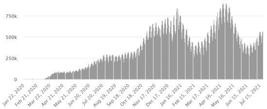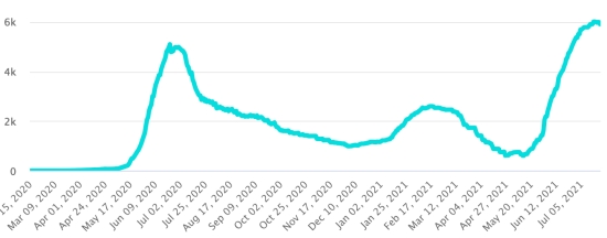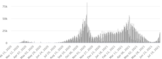 Most affected municipalities in the West (2021): Delmas: 1.806 (+3); Pétion ville 1,594 (+2); Port-au-Prince 992 (+3); Tabarre 781 (+4); Croix-des-Bouquets 721 (+2); Carrefour 361 (+0) Cases tested since the start of the pandemic: 96,903 cases (+354 in 24 hours update July 15, 2021 (latest data available). Note that the very low number of people tested does not statistically allow us to a representative estimate of Covid-19 cases in Haiti. Confirmed cases by department (2021): West: 6.798 (2020: 6.945) North: 429 (2020: 677) Center: 532 (2020: 508) Artibonite: 429 (2020: 593) Northeast: 250 (2020: 314) Southeast: 257 (2020: 274) South: 392 (2020: 262) Northwest: 141 (2020: 229) Grand'Anse: 307 (2020: 176) Nippes: 100 (2020: 149) Cumulative deaths by department (2021): West: 174 (2020: 104) North: 29 (2020: 34) Center: 15 (2020: 13) Artibonite: 10 (2020: 39) Northeast: 4 (2020: 6) South: 27 (2020: 6) Southeast: 6 (2020: 9) Northwest: 6 (2020: 12) Grand'Anse: 1 (2020: 13) Nippes: 10 (2020: 5) Distribution of deaths by age (2020 and 2021): 0-9 years: 12 10-19 years: 6 20-29 years: 20 30-39 years: 32 (+1) 40-49 years: 55 50-59 years: 92 (+1) 60-69 years: 111 (+1) 70-79 years: 116 (+1) 80 years and over: 79 Vaccination: 157 doses injected on July 22, 2021. 1.857 doses of vaccine have been injected since July 16, 2021, date of the first injection https://www.haitilibre.com/en/news-34253-haiti-covid-first-injections-of-vaccines.html . Latest data available. DIASPORA: Epidemiological situation: USA: * Case since the first case (March 9, 2020): 35,213,594 cases (+67,118 in 24 hours), the day before (+64,757) * Healings: 29,478,173 healings (+19,770 in 24 hours), the day before (+23,232) National Healing Rate: 83.71% (-) * Death: 626,172 deaths (+364 in 24 hours), the day before (+445) National death rate: 1.77% (-) * Active cases (less deaths and recoveries): 5,109,249 cases, (+46,984 in 24 hours), the day before (+41,080) * Tests: 520,411,488 people tested since the first case. USA: Number of daily confirmed cases: