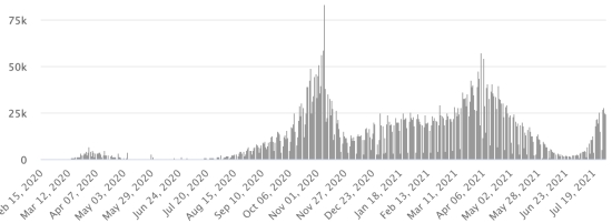 Vaccination: 4.10 billion doses of vaccine injected (+30 million doses injected in 24 hours updated July 30, 2021 latest data available). HAITI: Epidemiological situation: According to the Ministry of Public Health, 9 new cases in 24 hours of Covid-19 and its variants were confirmed in Haiti on July 25 (latest partial data available) for a total of 20,125 cases confirmed throughout the national territory (45.8% women and 54.2% men), since the first case (March 19, 2020 https://www.haitilibre.com/en/news-30319-haiti-health-origin-of-the-first-2-cases-of-covid-19-in-haiti.html). Last update (39 cases in 24 hours on July 24, 2021). 3rd wave: As of July 25, 2021 the total of the 3rd wave (beginning of May 10, 2021) amounts to 6,820 confirmed cases and 281 deaths . Healings: 14,142 (+100 in 24h) Healing rate: 70.27% (+) Deaths: 552 +0 deaths in 24 hours Mortality rate: 2.74% (+) Haiti: Number of daily deaths:
