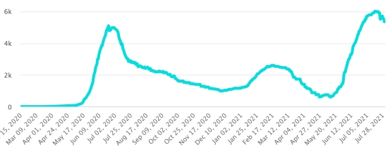 Most affected municipalities in the West (2021): Delmas: 1.833 (+0); Pétion ville 1,615 (+1); Port-au-Prince 1.021 (+2); Tabarre 788 (+1); Croix-des-Bouquets 756 (+1) Cases tested since the start of the pandemic: 100,144 cases (+345 in 24 hours, update July 26, 2021 (latest data available). Note that the very low number of people tested does not statistically allow us to do so. a representative estimate of Covid-19 cases in Haiti. Confirmed cases by department (2021): West: 6.958 (2020: 6.945) North: 433 (2020: 677) Center: 561 (2020: 508) Artibonite: 473 (2020: 593) Northeast: 254 (2020: 314) Southeast: 281 (2020: 274) South: 441 (2020: 262) Northwest: 159 (2020: 229) Grand'Anse: 351 (2020: 176) Nippes: 119 (2020: 149) Cumulative deaths by department (2021): West: 179 (2020: 104) North: 29 (2020: 34) Center: 22 (2020: 13) Artibonite: 17 (2020: 39) Northeast: 4 (2020: 6) South: 28 (2020: 6) Southeast: 10 (2020: 9) Northwest: 7 (2020: 12) Grand'Anse: 5 (2020: 13) Nippes: 13 (2020: 5) Distribution of deaths by age (2020 and 2021): 0-9 years: 13 10-19 years: 6 20-29 years: 21 30-39 years: 34 40-49 years: 57 50-59 years: 96 60-69 years: 119 (+1) 70-79 years: 126 (+2) 80 years and over: 83 Vaccination: 6,576 (+1,151 in 24 hours) doses of “Spikevax” vaccine (official name since June 21, 2021) from the MODERNA Laboratory have been injected in total since July 16, 2021, date of the first injection https://www.haitilibre.com/en/news-34253-haiti-covid-first-injections-of-vaccines.html. Update July 30, 2021, latest data available. List of Vaccination Centers: as of July 31 University Peace Hospital, Delmas 33, without appointment from 9:00 a.m. Saint-Damien Hospital, Tabarre 41, without appointment from 9:00 a.m. Gheskio IMIS, Tabarre 41, with appointment from 9:00 a.m. vaccinationimis@gheskio.org Tel: 39 10 91 82 Gheskio INLR, Boulevard Harry Truman, Port-au-Prince, with appointment from 8:00 a.m. inlrvaccionation@gheskio.org Tel: 39 10 91 82 Juvenat Community Hospital, DONDEFH, Juvénat, without appointment, from 8:00 a.m. Fermathe Hospital, Fermathe 64, without appointment, from 9:00 a.m. Justinien University Hospital, Cap-Haitien, without appointment, from 9:00 a.m. Ofatma Hospital, Cap-Haitien, without appointment, from 9:00 a.m. Mirebalais University Hospital, Mirebalais, without appointment, from 9:00 a.m. Sainte Thérèse Hospital, Hinche, without appointment, from 9:00 a.m. Hospital Saint Michel, Jacmel, without appointment, from 9:00 a.m. Departmental hospital of Fort-Liberté, Fort-Liberté, without appointment, from 9:00 a.m. Caraol Health Center, Caracol, without appointment, from 9:00 a.m. Immaculate Conception Hospital, Northwest, without appointment, from 9:00 a.m. Hôpital la Providence des Gonaïves, Artibonite, without appointment, from 9:00 a.m. Lespwa HHF Center, Jérémie, Tue Brouette, without appointment, from Monday, August 2, 2021 8:00 a.m. - 4:00 p.m. St Jean Baptiste Anse d'Hainault Hospital, Rue Boulevard Gaillard / Anse d'Hainault, without appointment, from Monday August 2, 2021 8:00 a.m. - 4:00 p.m. Hospital, St Pierre de Corail, Rue Père Bernier # 1 / Corail, without appointment, from Monday August 2, 2021 8:00 a.m. - 4:00 p.m. DIASPORA: Epidemiological situation: USA: * Case since the first case (March 9, 2020): 35,745,024 cases (+56,518 in 24 hours), the day before (+104,234) * Healings: 29,666,117 healings (+14,079 in 24 hours), the day before (+25,284) National Healing Rate: 82.99% (-) * Death: 629,315 deaths (+251 in 24 hours), the day before (+572) National death rate: 1.76% (=) * Active cases (less deaths and recoveries): 5,449,592 cases, (+42,188 in 24 hours), the day before (+78,378) * Tests: 529,679,820 people tested since the first case. USA: Number of daily confirmed cases: