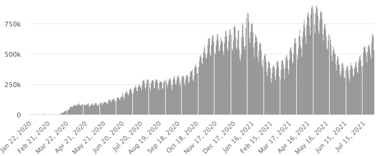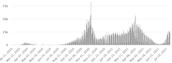 Vaccination: 4.14 billion doses of vaccine injected (+40 million doses injected in 24 hours updated July 31, 2021 latest data available). HAITI: Epidemiological situation: According to the Ministry of Public Health, 32 new cases in 24 hours of Covid-19 and its variants were confirmed in Haiti on July 26 (latest partial data available) for a total of 20,157 cases confirmed throughout the national territory (45.87% women and 54.13% men), since the first case (March 19, 2020 https://www.haitilibre.com/en/news-30319-haiti-health-origin-of-the-first-2-cases-of-covid-19-in-haiti.html). Last update (9 cases in 24 hours on July 25, 2021). 3rd wave: As of July 26, 2021 the total of the 3rd wave (beginning of May 10, 2021) amounts to 6,852 confirmed cases and 284 deaths . Healings: 14,248 (+106 in 24h) Healing rate: 70.15% (-) Death: 555 deaths +3 in 24 hours (Artibonite +3) Mortality rate: 2.75% (+) Haiti: Trend in deaths since the start of the pandemic: