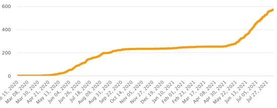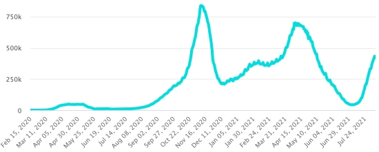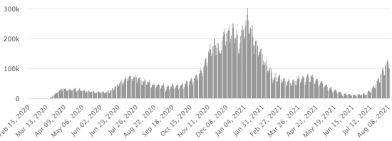 Vaccination: 351.93 million doses of vaccine injected since December 14, 2020, the date of the first injection in the United States (530,000 doses injected, in 24 hours). Update 8 August last data available). DOMINICAN REPUBLIC: Cases confirmed since March 1, 2020: 344,625 cases (+130 in 24 hours) the day before (+344). First case (March 1, 2020) https://www.haitilibre.com/en/news-30165-haiti-flash-first-case-of-covid-19-in-the-dominican-republic.html Healings: 328,689 healings since March 1 (+1,832 in 24 hours), the day before (+356) National Healing Rate: 95.37% (+) Death: 3,974 deaths (+0 in 24 hours), the day before (+0) Mortality rate: 1.15% (=) Active cases: (excluding death and recovery) 11,962 cases (-1,702 in 24 hours) the day before (-12) Dominican Republic: Trend of active cases: (less healings and deaths)