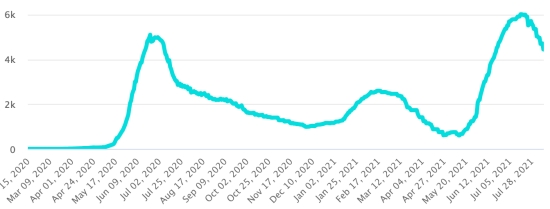 Most affected municipalities in the West (2021): Delmas: 1.859 (+3); Pétion ville 1,629 (+2); Port-au-Prince 1.036 (+5); Tabarre 805 (+4); Croix-des-Bouquets 783 (+1) Cases tested since the start of the pandemic: 102,731 cases (+461 in 24 hours, update 3 August 2021 (latest data available). Note that the very low number of people tested does not statistically allow us to a representative estimate of Covid-19 cases in Haiti By comparison, the neighboring Republic has carried out more than 1.8 million tests on its population since the start of the epidemic. Confirmed cases by department (2021): West: 7.082 (2020: 6.945) North: 441 (2020: 677) Center: 576 (2020: 508) Artibonite: 504 (2020: 593) Northeast: 263 (2020: 314) Southeast: 293 (2020: 274) South: 467 (2020: 262) Northwest: 203 (2020: 229) Grand'Anse: 357 (2020: 176) Nippes: 120 (2020: 149) Cumulative deaths by department (2021): West: 187 (2020: 104) North: 30 (2020: 34) Center: 24 (2020: 13) Artibonite: 17 (2020: 39) Northeast: 4 (2020: 6) South: 32 (2020: 6) Southeast: 11 (2020: 9) Northwest: 7 (2020: 12) Grand'Anse: 5 (2020: 13) Nippes: 14 (2020: 5) Distribution of deaths by age (since the start of the epidemic): 0-9 years: 13 10-19 years: 6 20-29 years: 21 30-39 years: 35 40-49 years: 58 (+1) 50-59 years: 97 (+1) 60-69 years: 125 70-79 years: 130 80 years and over: 87 (+1) Vaccination: 13.733 (+1.432 in 24 hours) doses of “Spikevax” vaccine (official name since June 21, 2021) from the MODERNA Laboratory have been injected in total in Haiti since July 16, 2021, date of the first injection https://www.haitilibre.com/en/news-34253-haiti-covid-first-injections-of-vaccines.html. Update 6 August July 2021, latest data available. Vaccination centers (35): New Open Centers: South: Port-Salut Community Reference Hospital (HCR) without appointment from 9:00 a.m. Aquin Community Reference Hospital (HCR) walk-in from 9:00 a.m. Nippes: Asylum Community Reference Hospital (HCR), without appointment, from 9:00 a.m. See the list of the 32 other Centers: : https://www.icihaiti.com/en/news-34419-icihaiti-epidemic-list-of-32-vaccination-sites-opened-by-department.html DIASPORA: Epidemiological situation: USA: * Case since the first case (March 9, 2020): 36,780,480 cases (+237,142 in 24 hours), the day before (+24,390) * Healings: 29,923,320 healings (+64,258 in 24 hours), the day before (+7,259) National Healing Rate: 81.35% (-) * Death: 633,799 deaths (+683 in 24 hours), the day before (+129) National death rate: 1.72% (-) * Active cases (less deaths and recoveries): 6,223,361 cases, (+172,201 in 24 hours), the day before (+17,002) * Tests: 546,622,139 people tested since the first case USA: Number of daily confirmed cases: