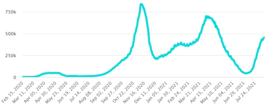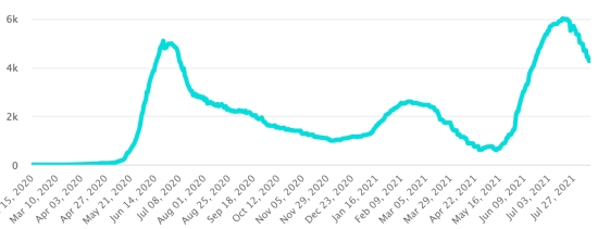Vaccination: 355.75 million doses of vaccine injected since December 14, 2020, the date of the first injection in the United States (990,000 doses injected, in 24 hours). Update August 14, latest data available). DOMINICAN REPUBLIC: Cases confirmed since March 1, 2020: 345,960 cases (+312 in 24 hours) the day before (+323). First case (March 1, 2020) https://www.haitilibre.com/en/news-30165-haiti-flash-first-case-of-covid-19-in-the-dominican-republic.html Healings: 336,157 healings since March 1 (+82 in 24 hours), the day before (+1,212) National Healing Rate: 97.16% (-) Death: 3,976 deaths (+0 in 24 hours), the day before (+0) Death rate: 1.14% (-) Positivity rate over 4 epidemiological weeks: 6.7% Active cases: (excluding death and recovery) 5,827 cases (+241 in 24 hours) the day before (-900) TOP 5 provinces with the most new cases in 24 hours: National District: 68 cases Santo-Domingo 60 cases Santiago: 32 cases Puerto Plata: 15 Duarte: 15 Dominican Republic: Trend of active cases: (less healings and deaths)