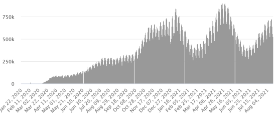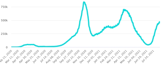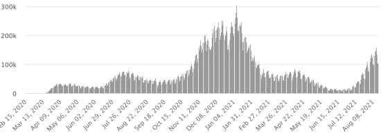 Most affected municipalities in the West (2021): Delmas: 1.874 (+1); Pétion ville 1,639 (+1); Port-au-Prince 1.044 (+1); Tabarre 809 (+0); Croix-des-Bouquets 793 (+2) Cases tested since the start of the pandemic: 104,689 104,230 cases (+459 in 48 hours) update 9 August 2021 latest data available. Note that the very low number of people tested does not statistically make it possible to make a representative estimate of the cases of Covid-19 in Haiti. By comparison, the neighboring Republic has carried out nearly 1.9 million tests on its population since the start of the epidemic. Confirmed cases by department (2021): West: 7.147 (2020: 6.945) North: 449 (2020: 677) Center: 593 (2020: 508) Artibonite: 513 (2020: 593) Northeast: 275 (2020: 314) Southeast: 299 (2020: 274) South: 475 (2020: 262) Northwest: 207 (2020: 229) Grand'Anse: 362 (2020: 176) Nippes: 138 (2020: 149) Cumulative deaths by department (2021): West: 191 (2020: 104) North: 30 (2020: 34) Center: 25 (2020: 13) Artibonite: 19 (2020: 39) Northeast: 4 (2020: 6) South: 32 (2020: 6) Southeast: 11 (2020: 9) Northwest: 7 (2020: 12) Grand'Anse: 5 (2020: 13) Nippes: 14 (2020: 5) Distribution of deaths by age (since the start of the epidemic): 0-9 years: 13 10-19 years: 6 20-29 years: 21 30-39 years: 35 40-49 years: 60 (+1) 50-59 years: 98 60-69 years: 127 (+2) 70-79 years: 131 80 years and over: 88 Vaccination: 19,940 (+1,074 in 48 hours) doses of “Spikevax” vaccine (official name since June 21, 2021) from the MODERNA Laboratory have been injected in total since July 16, 2021, date of the first injection https://www.haitilibre.com/en/news-34253-haiti-covid-first-injections-of-vaccines.html . Update 13 August 2021, latest data available. List of the 37 open vaccination centers: : https://www.icihaiti.com/en/news-34462-icihaiti-covid-list-of-37-vaccination-centers-opened-by-department.html (update 10 August 2021, last information available) DIASPORA: Epidemiological situation: USA: * Case since the first case (March 9, 2020): 37,736,986 cases (+103,687 in 24 hours), the day before (+30,883) * Healings: 30,227,302 healings (+73,726 in 24 hours), the day before (+8,967) National Healing Rate: 80.09% (-) * Death: 638,798 deaths (+1,237 in 24 hours), the day before (+122) National death rate: 1.69% (-) * Active cases (less deaths and recoveries): 6,870,886 cases, (+28,724 in 24 hours), the day before (+21,794) * Tests: 558,144,828 people tested since the first case USA: Number of confirmed daily cases :