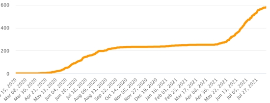 Vaccination: 4.76 billion doses of vaccine injected (+40 million doses injected in 24 hours updated August 16, 2021 latest data available). HAITI: Epidemiological situation: According to the Ministry of Public Health, 28 new cases within 48 hours of Covid-19 and its variants were confirmed in Haiti on August 8 and 9, 2021 (latest partial data available) for a total of 20,585 cases confirmed throughout the national territory (46.1% women and 53.9% men), since the first case (March 19, 2020 https://www.haitilibre.com/en/news-30319-haiti-health-origin-of-the-first-2-cases-of-covid-19-in-haiti.html). Previous update (49 cases on August 6 and 7). 3rd wave: As of August 7, 2021 the total of the 3rd wave (beginning of May 10, 2021) amounts to 7,279 confirmed cases and 308 deaths . Healings: 16,206 (+202 in 48h) Healing rate: 77.72% (+) Deaths: 579 deaths +3 (+1 West and +2 Artibonite) Mortality rate: 2.81% (+) Haiti: Trend in deaths: