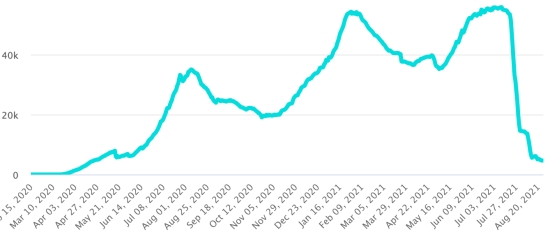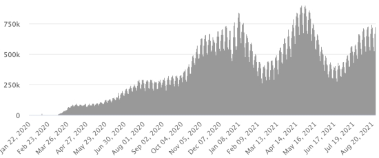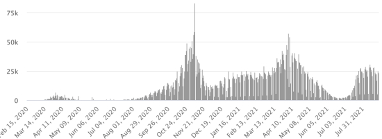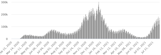 The total of the 3rd wave (beginning of May 10, 2021) amounts to 7,527 confirmed cases and 313 deaths. . Updated August 14, 2021.