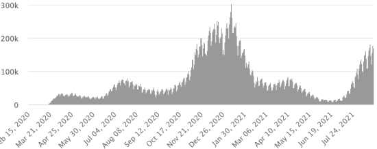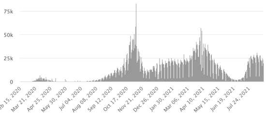 Cases tested since the start of the pandemic: 107,780 cases (+78 in 24 hours) update August 20, 2021 latest data available. Note that the very low number of people tested does not statistically make it possible to make a representative estimate of the active cases of Covid-19 in Haiti. By comparison, the neighboring Republic has carried out nearly 2 million tests on its population since the start of the epidemic. Most affected municipalities in the West (2021): Delmas: 1.893 (+0); Pétion ville 1,659 (+0); Port-au-Prince 1.053 (+1); Tabarre 830 (+1); Croix-des-Bouquets 819 (+0) Confirmed cases by department (2021): West: 7.255 (2020: 6.945) North: 454 (2020: 677) Center: 648 (2020: 508) Artibonite: 528 (2020: 593) Northeast: 276 (2020: 314) Southeast: 317 (2020: 274) South: 479 (2020: 262) Northwest: 235 (2020: 229) Grand'Anse: 384 (2020: 176) Nippes: 142 (2020: 149) Cumulative deaths by department (2021): West: 194 (2020: 104) North: 30 (2020: 34) Center: 25 (2020: 13) Artibonite: 20 (2020: 39) Northeast: 4 (2020: 6) South: 32 (2020: 6) Southeast: 11 (2020: 9) Northwest: 7 (2020: 12) Grand'Anse: 5 (2020: 13) Nippes: 15 (2020: 5) Distribution of deaths by age (since the start of the epidemic): 0-9 years: 13 10-19 years: 6 20-29 years: 22 30-39 years: 35 40-49 years: 61 50-59 years: 99 60-69 years: 127 70-79 years: 132 80 years and over: 89 Vaccination: 28.736 (+1.665 in 48 hours) doses of “Spikevax” vaccine (official name since June 21, 2021) from the MODERNA Laboratory have been injected in total since July 16, 2021, date of the first injection. 3,360 people are fully vaccinated with 2 doses. Update 25 August 2021, latest data available. List of 51 open vaccination centers (and opening hours) by department: https://www.icihaiti.com/en/news-34544-icihaiti-covid-list-of-51-vaccination-centers-opened-by-department.html (update August 20, 2021) DIASPORA: Epidemiological situation: USA: * Case since the first case (March 9, 2020): 39,342,153 cases (+184,904 in 24 hours), the day before (+188,324) * Healings: 30,732,120 healings (+53,837 in 24h), the day before (+59,639) National Healing Rate: 78.11% (-) * Death: 651,956 deaths (+2,276 in 24 hours), the day before (+1,519) National death rate: 1.65% (=) * Active cases (less deaths and recoveries): 7,958,077 cases (+128,791 in 24 hours), the day before (+127,166) * Tests: 575,540,226 people tested since the first case USA: Number of daily confirmed cases: