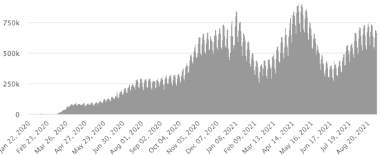 Cases tested since the start of the pandemic: 110,525 109,702 cases (+823 in 48 hours) update 28 August 2021 latest data available. Note that the very low number of people tested does not statistically make it possible to make a representative estimate of the active cases of Covid-19 in Haiti. By comparison, the neighboring Republic has carried out nearly 2 million tests on its population since the start of the epidemic. Most affected municipalities in the West (2021): Delmas: 1.910 (+6); Pétion ville 1,670 (+4); Port-au-Prince 1,069 (+5); Tabarre 834 (+2); Croix-des-Bouquets 830 (+2) Confirmed cases by department (2021): West: 7.332 (2020: 6.945) North: 460 (2020: 677) Center: 661 (2020: 508) Artibonite: 543 (2020: 593) Northeast: 276 (2020: 314) Southeast: 327 (2020: 274) South: 483 (2020: 262) Northwest: 240 (2020: 229) Grand'Anse: 386 (2020: 176) Nippes: 142 (2020: 149) Cumulative deaths by department (2021): West: 194 (2020: 104) North: 30 (2020: 34) Center: 25 (2020: 13) Artibonite: 20 (2020: 39) Northeast: 4 (2020: 6) South: 32 (2020: 6) Southeast: 11 (2020: 9) Northwest: 9 (2020: 12) Grand'Anse: 5 (2020: 13) Nippes: 15 (2020: 5) Distribution of deaths by age (since the start of the epidemic): 0-9 years: 13 10-19 years: 6 20-29 years: 22 30-39 years: 35 40-49 years: 61 50-59 years: 101 60-69 years: 127 70-79 years: 132 80 years and over: 89 Vaccination: 35,400 (+9,683 in 6 days) doses of the “Spikevax” vaccine (official name since June 21, 2021) from the MODERNA Laboratory have been injected in total since July 16, 2021, date of the first injection. 6,404 people are fully vaccinated with 2 doses. Update August 31, 2021, last available data. List of the 59 vaccination centers open (and opening hours) by department: (updated September 1, 2021) DIASPORA: Epidemiological situation: USA: * Case since the first case (March 9, 2020): 40,703,674 cases (+190,656 in 24 hours), the day before (+182,306) * Healings: 31,265,847 healings (+66,012 in 24h), the day before (+61,899) National Healing Rate: 76.81% (-) * Death: 664,935 deaths (+2,082 in 24 hours), the day before (+2,926) National death rate: 1.63% (=) * Active cases (less deaths and recoveries): 8,772,892 cases (+122,562 in 24 hours), the day before (+117,481) * Tests: 590,675,384 people tested since the first case USA: Number of daily confirmed cases: