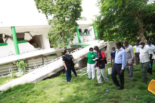 Marie Gréta Roy Clément, the Minister of Public Health, her Director General Dr Lauré Adrien and several executives of the Ministry made a 3-day tour in the south of the country to assess the damage caused by the earthquake of August 14 to several health infrastructures in Nippes and the South.