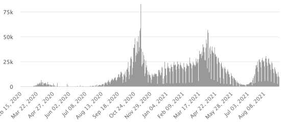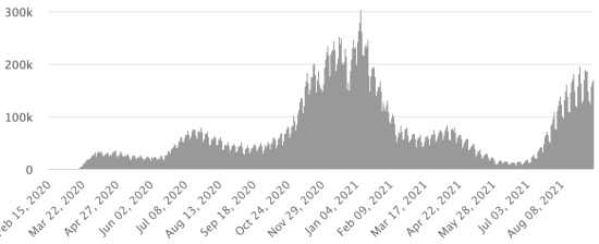 Cases tested since the start of the pandemic: 113,815 cases (+420 in 48 hours) update 6 September 2021 latest data available. Note that the very low number of people tested does not statistically make it possible to make a representative estimate of the active cases of Covid-19 in Haiti. By comparison, the neighboring Republic has carried out nearly 2 million tests on its population since the start of the epidemic. Most affected municipalities in the West (2021): Delmas: 1.937 (+6); Pétion ville 1,695 (+1); Port-au-Prince 1,084 (+2); Tabarre 846 (+0); Croix-des-Bouquets 846 (+1) Confirmed cases by department (2021): West: 7.474 (2020: 6.945) North: 464 (2020: 677) Center: 667 (2020: 508) Artibonite: 558 (2020: 593) Northeast: 284 (2020: 314) Southeast: 340 (2020: 274) South: 486 (2020: 262) Northwest: 250 (2020: 229) Grand'Anse: 398 (2020: 176) Nippes: 144 (2020: 149) Cumulative deaths by department (2021): West: 196 (2020: 104) North: 32 (2020: 34) Center: 26 (2020: 13) Artibonite: 21 (2020: 39) Northeast: 5 (2020: 6) South: 32 (2020: 6) Southeast: 11 (2020: 9) Northwest: 10 (2020: 12) Grand'Anse: 5 (2020: 13) Nippes: 16 (2020: 5) Distribution of deaths by age (since the start of the epidemic): 0-9 years: 13 10-19 years: 6 20-29 years: 22 30-39 years: 37 (+2) 40-49 years: 62 50-59 years: 101 60-69 years: 130 (+2) 70-79 years: 134 (+2) 80 years and over: 90 (+1) Vaccination: 45,860 (+10,460 in 7 days) doses of “Spikevax” vaccine (official name since June 21, 2021) from the MODERNA Laboratory have been injected in total since July 16, 2021, date of the first injection. 12,225 people are fully vaccinated (2 doses). Update September 7, August 2021, latest data available. List of 62 open vaccination centers (and opening hours) by department: (updated September 6, 2021) DIASPORA: Epidemiological situation: USA: * Case since the first case (March 9, 2020): 41,741,693 cases (+180,537 in 24 hours), the day before (+163,569) * Healings: 31,820,994 healings (+76,035 in 24h), the day before (+77,452) National Healing Rate: 76.23% (-) * Death: 677,017 deaths (+2,470 in 24 hours), the day before (+3,364) National death rate: 1.62% (=) * Active cases (less deaths and recoveries): 9,243,682 cases (+102,032 in 24 hours), the day before (+82,753) * Tests: 602,794,033 people tested since the first case USA: Number of confirmed cases daily :