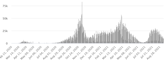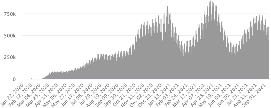 Cases tested since the start of the pandemic: 113,815 cases (+420 in 48 hours) update 6 September 2021 latest data available. Note that the very low number of people tested does not statistically make it possible to make a representative estimate of the active cases of Covid-19 in Haiti. By comparison, the neighboring Republic has carried out nearly 2 million tests on its population since the start of the epidemic. Most affected municipalities in the West (2021): Delmas: 1.937 (+6); Pétion ville 1,695 (+1); Port-au-Prince 1,084 (+2); Tabarre 846 (+0); Croix-des-Bouquets 846 (+1) Confirmed cases by department (2021): West: 7.474 (2020: 6.945) North: 464 (2020: 677) Center: 667 (2020: 508) Artibonite: 558 (2020: 593) Northeast: 284 (2020: 314) Southeast: 340 (2020: 274) South: 486 (2020: 262) Northwest: 250 (2020: 229) Grand'Anse: 398 (2020: 176) Nippes: 144 (2020: 149) Cumulative deaths by department (2021): West: 196 (2020: 104) North: 32 (2020: 34) Center: 26 (2020: 13) Artibonite: 21 (2020: 39) Northeast: 5 (2020: 6) South: 32 (2020: 6) Southeast: 11 (2020: 9) Northwest: 10 (2020: 12) Grand'Anse: 5 (2020: 13) Nippes: 16 (2020: 5) Distribution of deaths by age (since the start of the epidemic): 0-9 years: 13 10-19 years: 6 20-29 years: 22 30-39 years: 37 (+2) 40-49 years: 62 50-59 years: 101 60-69 years: 130 (+2) 70-79 years: 134 (+2) 80 years and over: 90 (+1) Vaccination: 45,860 (+10,460 in 7 days) doses of “Spikevax” vaccine (official name since June 21, 2021) from the MODERNA Laboratory have been injected in total since July 16, 2021, date of the first injection. 12,225 people are fully vaccinated (2 doses). Update September 7, August 2021, latest data available. List of 62 open vaccination centers (and opening hours) by department: (updated September 6, 2021) DIASPORA: Epidemiological situation: USA: * Case since the first case (March 9, 2020): 41,816,668 cases (+74,975 in 24 hours), the day before (+180,537) * Healings: 31,857,877 healings (+36,883 in 24h), the day before (+76,035) National Healing Rate: 76.18% (-) * Deaths: 677,737 deaths (+720 in 24 hours), the day before (+2,470) National death rate: 1.62% (=) * Active cases (less deaths and recoveries): 9,281,054 cases (+37,372 in 24 hours), the day before (+102,032) * Tests: 605,355,442 people tested since the first case USA: Number of daily confirmed cases: