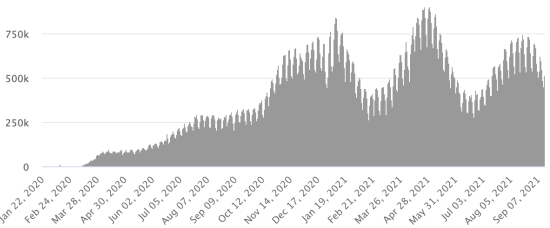Cases tested since the start of the pandemic: 115,563 cases (+596 in 48 hours) update September 11, 2021 latest data available. Note that the very low number of people tested does not statistically make it possible to make a representative estimate of the active cases of Covid-19 in Haiti. By comparison, the neighboring Republic has carried out more than 2 million tests on its population since the start of the epidemic. Most affected municipalities in the West (2021): Delmas: 1.964 (+13); Pétion ville 1,709 (+4); Port-au-Prince 1,090 (+4); Tabarre 851 (+2); Croix-des-Bouquets 859 (+6) Confirmed cases by department (2021): West: 7.544 (2020: 6.945) North: 467 (2020: 677) Center: 678 (2020: 508) Artibonite: 568 (2020: 593) Northeast: 284 (2020: 314) Southeast: 350 (2020: 274) South: 493 (2020: 262) Northwest: 259 (2020: 229) Grand'Anse: 399 (2020: 176) Nippes: 149 (2020: 149) Cumulative deaths by department (2021): West: 196 (2020: 104) North: 32 (2020: 34) Center: 26 (2020: 13) Artibonite: 21 (2020: 39) Northeast: 5 (2020: 6) South: 32 (2020: 6) Southeast: 11 (2020: 9) Northwest: 10 (2020: 12) Grand'Anse: 5 (2020: 13) Nippes: 17 (2020: 5) Distribution of deaths by age (since the start of the epidemic): 0-9 years: 13 10-19 years: 6 20-29 years: 22 30-39 years: 37 40-49 years: 62 50-59 years: 102 60-69 years: 130 70-79 years: 134 80 years and over: 90 Vaccination: 50,283 (+4,423 in 2 days) doses of “Spikevax” vaccine (official name since June 21, 2021) from the MODERNA Laboratory have been injected in total since July 16, 2021, date of the first injection. 14,382 people are fully vaccinated (2 doses). Update 9 September August 2021, latest data available. List of 68 vaccination centers open in Haiti (and hours) by department: (updated September 13, 2021) DIASPORA: Epidemiological situation: USA: * Case since the first case (March 9, 2020): 42,288,205 cases (+148,102 in 24 hours), the day before (+286,741) * Healings: 32,176,784 healings (+113,879 in 24 hours), the day before (+191,037) National Healing Rate: 76.08% (=) * Death: 682,341 deaths (+2,067 in 24 hours), the day before (+2,286) National death rate: 1.61% (=) * Active cases (less deaths and recoveries): 9,429,080 cases (+32,156 in 24 hours), the day before (+93,418) * Tests: 611,216,031 people tested since the first case USA: Daily confirmed case trend: