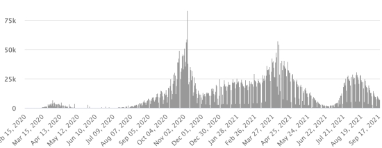 3rd wave: The total for the 3rd wave (beginning of May 10, 2021) stands at 8,079 confirmed cases and 334 deaths. . Updated September 15, 2021. Cases tested since the start of the pandemic: 116,433 115,741 cases (+692 in 48 hours) update September 15, 2021 latest data available. Note that the very low number of people tested does not statistically make it possible to make a representative estimate of the active cases of Covid-19 in Haiti. By comparison, the neighboring Republic has carried out more than 2 million tests on its population since the start of the epidemic. Most affected municipalities in the West (2021): Delmas: 1.991 (+24); Pétion ville 1,717 (+5); Port-au-Prince 1,093 (+3); Tabarre 855 (+2); Croix-des-Bouquets 870 (+8) Confirmed cases by department (2021): West: 7.601 (2020: 6.945) North: 478 (2020: 677) Center: 684 (2020: 508) Artibonite: 572 (2020: 593) Northeast: 286 (2020: 314) Southeast: 353 (2020: 274) South: 496 (2020: 262) Northwest: 263 (2020: 229) Grand'Anse: 403 (2020: 176) Nippes: 150 (2020: 149) Cumulative deaths by department (2021): West: 200 (2020: 104) North: 34 (2020: 34) Center: 26 (2020: 13) Artibonite: 22 (2020: 39) Northeast: 5 (2020: 6) South: 32 (2020: 6) Southeast: 11 (2020: 9) Northwest: 12 (2020: 12) Grand'Anse: 5 (2020: 13) Nippes: 17 (2020: 5) Distribution of deaths by age (since the start of the epidemic): 0-9 years: 13 10-19 years: 6 20-29 years: 22 30-39 years: 37 40-49 years: 64 (+2) 50-59 years: 104 (+2) 60-69 years: 134 (+4) 70-79 years: 135 80 years and over: 90 Vaccination: 52,050 (+1,767 in 4 days) doses of “Spikevax” vaccine (official name) from the MODERNA Laboratory have been injected in total since July 16, 2021, date of the first injection. 15,002 people are fully vaccinated (2 doses). Update 13 September August 2021, latest data available. List of 68 vaccination centers open in Haiti (and hours) by department: (updated September 13, 2021) DIASPORA: Epidemiological situation: USA: * Case since the first case (March 9, 2020): 42,866,805 cases (+66,898 in 24 hours), the day before (+165,853) * Healings: 32,483,226 healings (+49,060 in 24h), the day before (+86,440) National Healing Rate: 75.77% (-) * Death: 691,562 deaths (+848 in 24 hours), the day before (+2,228) National death rate: 1.61% (=) * Active cases (less deaths and recoveries): 9,692,017 cases (+16,990 in 24 hours), the day before (+77,185) * Tests: 618,987,057 people tested since the first case USA: Number of daily confirmed cases :