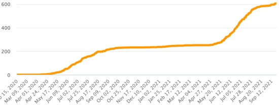 Vaccination: 6.03 billion doses of vaccine injected (+30 million doses injected in 24 hours. Update September 22, 2021 (latest data available). HAITI: Epidemiological situation: If we are to believe the Ministry of Public Health, +40 new cases in 24 hours of Covid-19 and its variants were confirmed in Haiti on September 16, 2021 (latest partial data available) for a total of 21,453 cases confirmed throughout the national territory (46.3% of women and 53.7% of men), since the first case (March 19, 2020 https://www.haitilibre.com/en/news-30319-haiti-health-origin-of-the-first-2-cases-of-covid-19-in-haiti.html). Previous update (+75 cases on September 14 and 15). Healings: 19,257 (+18 in 24h) Healing rate: 89.76% (+) Deaths: 607 +2 deaths in 24 hours (+2 South) Death rate: 2.82% (=) Haiti: Trend in deaths: