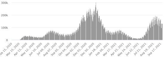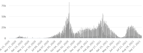 3rd wave: The total for the 3rd wave (beginning of May 10, 2021) stands at 8,206 confirmed cases and 339 deaths. . Updated September 19, 2021. Cases tested since the start of the pandemic: 117,578 cases (+558 in 48 hours) update September 19, 2021 latest data available. Note that the very low number of people tested does not statistically make it possible to make a representative estimate of the active cases of Covid-19 in Haiti. This also explains the low number of cases detected daily. By comparison, the neighboring Republic has carried out more than 2,000,000 tests on its population since the start of the epidemic. Most affected municipalities in the West (2021): Delmas: 2015 (+11); Pétion ville 1,722 (+2); Port-au-Prince 1.099 (+1); Tabarre 864 (+6); Croix-des-Bouquets 882 (+6) Confirmed cases by department (2021): West: 7.666 (2020: 6.945) North: 489 (2020: 677) Center: 697 (2020: 508) Artibonite: 582 (2020: 593) Northeast: 293 (2020: 314) Southeast: 360 (2020: 274) South: 500 (2020: 262) Northwest: 265 (2020: 229) Grand'Anse: 410 (2020: 176) Nippes: 151 (2020: 149) Cumulative deaths by department (2021): West: 203 (2020: 104) North: 34 (2020: 34) Center: 26 (2020: 13) Artibonite: 22 (2020: 39) Northeast: 5 (2020: 6) South: 34 (2020: 6) Southeast: 11 (2020: 9) Northwest: 12 (2020: 12) Grand'Anse: 5 (2020: 13) Nippes: 17 (2020: 5) Distribution of deaths by age (since the start of the epidemic): 0-9 years: 13 10-19 years: 6 20-29 years: 22 30-39 years: 37 40-49 years: 65 (+1) 50-59 years: 104 60-69 years: 136 (+1) 70-79 years: 136 (+1) 80 years and over: 90 Vaccination: 61.204 (+861 in 3 days) doses of “Spikevax” vaccine (official name) from the MODERNA Laboratory have been injected in total in Haiti since July 16, 2021, date of the first injection. 18,535 people are fully vaccinated (2 doses). Update September 21, August 2021, latest data available. List of 75 vaccination centers open in Haiti (and hours) by department: (update September 20, 2021) DIASPORA: Epidemiological situation: USA: * Case since the first case (March 9, 2020): 43,668,680 cases (+136,374 in 24 hours), the day before (+127,429) * Healings: 33,112,993 healings (+79,468 in 24h), the day before (+85,671) National Healing Rate: 75.82% (-) * Death: 705,293 deaths (+2,315 in 24 hours), the day before (+3,230) National death rate: 1.61% (=) * Active cases (less deaths and recoveries): 9,850,394 cases (+54,591), the day before (+38,528) * Tests: 631,157,435 people tested since the first case USA: Number of daily confirmed cases: