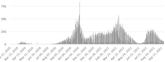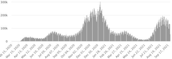 3rd wave: The total for the 3rd wave (beginning of May 10, 2021) stands at 8,206 confirmed cases and 339 deaths. . Updated September 19, 2021. Cases tested since the start of the pandemic: 117,578 cases (+558 in 48 hours) update September 19, 2021 latest data available. Note that the very low number of people tested does not statistically make it possible to make a representative estimate of the active cases of Covid-19 in Haiti. This also explains the low number of cases detected daily. By comparison, the neighboring Republic has carried out more than 2,000,000 tests on its population since the start of the epidemic. Most affected municipalities in the West (2021): Delmas: 2015 (+11); Pétion ville 1,722 (+2); Port-au-Prince 1.099 (+1); Tabarre 864 (+6); Croix-des-Bouquets 882 (+6) Confirmed cases by department (2021): West: 7.666 (2020: 6.945) North: 489 (2020: 677) Center: 697 (2020: 508) Artibonite: 582 (2020: 593) Northeast: 293 (2020: 314) Southeast: 360 (2020: 274) South: 500 (2020: 262) Northwest: 265 (2020: 229) Grand'Anse: 410 (2020: 176) Nippes: 151 (2020: 149) Cumulative deaths by department (2021): West: 203 (2020: 104) North: 34 (2020: 34) Center: 26 (2020: 13) Artibonite: 22 (2020: 39) Northeast: 5 (2020: 6) South: 34 (2020: 6) Southeast: 11 (2020: 9) Northwest: 12 (2020: 12) Grand'Anse: 5 (2020: 13) Nippes: 17 (2020: 5) Distribution of deaths by age (since the start of the epidemic): 0-9 years: 13 10-19 years: 6 20-29 years: 22 30-39 years: 37 40-49 years: 65 (+1) 50-59 years: 104 60-69 years: 136 (+1) 70-79 years: 136 (+1) 80 years and over: 90 Vaccination: 61.204 (+861 in 3 days) doses of “Spikevax” vaccine (official name) from the MODERNA Laboratory have been injected in total in Haiti since July 16, 2021, date of the first injection. 18,535 people are fully vaccinated (2 doses). Update September 21, August 2021, latest data available. List of 75 vaccination centers open in Haiti (and hours) by department: (update September 20, 2021) DIASPORA: Epidemiological situation: USA: * Case since the first case (March 9, 2020): 43,725,604 cases (+56,924 in 24 hours), the day before (+136,374) * Healings: 33,162,044 healings (+49,051 in 24h), the day before (+79,468) National healing rate: 75.84% (+) * Death: 706,058 deaths (+765 in 24 hours), the day before (+2.315) National death rate: 1.61% (=) * Active cases (less deaths and recoveries): 9,857,502 cases (+7,108), the day before (+54,591) * Tests: 631,838,920 people tested since the first case USA: Number of daily confirmed cases: