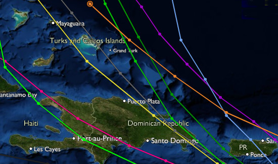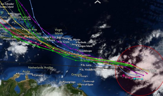 Satellite images of this Sunday, July 31 (8:00 am - EDT) and National Oceanic and Atmospheric Administration (NOAA) buoy data indicate that the large and elongated low pressure system centered about 650 miles east of the northern windward islands continues to become better organized, and that it could develop into a tropical depression at any time. The probability that this system becomes in the next 24 to 48 hours, a tropical storm is nearly 100% It moves at this time to the west-northwestward near 15 mph. An air force reserve unit reconnaissance aircraft is scheduled to investigate this disturbance later this afternoon. However, given that it is only a hurricane in formation, the forecast models for this low pressure system are highly variable, the probabilities trajectories are highly variable. Most indicate a probable passage to the north of Haiti. The National Meteorological Centre of Haiti is closely monitoring the trajectory and evolution of this system. Note that the predictions of "Geophysical Fluid Dynamics Laboratory (GFDL) model" (in pink on the image) shows a trajectory passing over or near Port-au-Prince, and that of "Beta and Advection Model, Shallow (BAMS)" (in green on the image) a trajectory passing through the center of Haiti.
