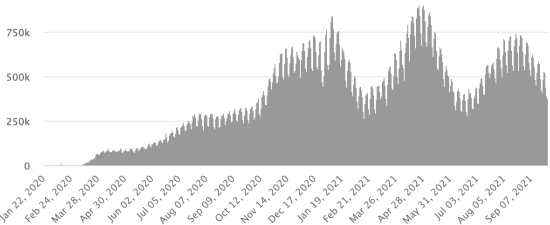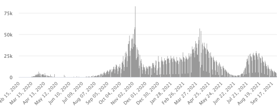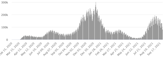 3rd wave: The total for the 3rd wave (beginning of May 10, 2021) stands at 8,206 confirmed cases and 339 deaths. . Updated September 19, 2021. Cases tested since the start of the pandemic: 117,578 cases (+558 in 48 hours) update September 19, 2021 latest data available. Note that the very low number of people tested does not statistically make it possible to make a representative estimate of the active cases of Covid-19 in Haiti. This also explains the low number of cases detected daily. By comparison, the neighboring Republic has carried out more than 2,000,000 tests on its population since the start of the epidemic. Most affected municipalities in the West (2021): Delmas: 2.025 (+10); Pétion ville 1,731 (+9); Port-au-Prince 1,110 (+11); Tabarre 870 (+6); Croix-des-Bouquets 890 (+8) Confirmed cases by department (2021): West: 7.712 (2020: 6.945) North: 493 (2020: 677) Center: 706 (2020: 508) Artibonite: 590 (2020: 593) Northeast: 293 (2020: 314) Southeast: 367 (2020: 274) South: 510 (2020: 262) Northwest: 265 (2020: 229) Grand'Anse: 428 (2020: 176) Nippes: 156 (2020: 149) Cumulative deaths by department (2021): West: 203 (2020: 104) North: 34 (2020: 34) Center: 26 (2020: 13) Artibonite: 22 (2020: 39) Northeast: 5 (2020: 6) South: 34 (2020: 6) Southeast: 11 (2020: 9) Northwest: 12 (2020: 12) Grand'Anse: 5 (2020: 13) Nippes: 17 (2020: 5) Distribution of deaths by age (since the start of the epidemic): 0-9 years: 13 10-19 years: 6 20-29 years: 22 30-39 years: 37 40-49 years: 65 50-59 years: 104 60-69 years: 136 70-79 years: 136 80 years and over: 90 Vaccination: 61,278 (+935 in 3 days) doses of “Spikevax” vaccine (official name) from the MODERNA Laboratory have been injected in total in Haiti since July 16, 2021, date of the first injection. 18,646 people are fully vaccinated (2 doses). Update September 21, 2021, latest data available. List of 75 vaccination centers open in Haiti (and hours) by department: (update September 20, 2021) DIASPORA: Epidemiological situation: USA: * Case since the first case (March 9, 2020): 43,942,335 cases (+191,352 in 24 hours), the day before (+25,379) * Healings: 33,394,833 healings (+208,572 in 24h), the day before (+24,217) National rate Healing: 75.99% (+) * Death: 709,119 deaths (+2,802 in 24 hours), the day before (+259) National death rate: 1.61% (=) * Active cases (less deaths and recoveries): 9,838,383 cases (-20,022), the day before (+903) * Tests: 636,523,937 people tested since the first case USA: Number of daily confirmed cases: