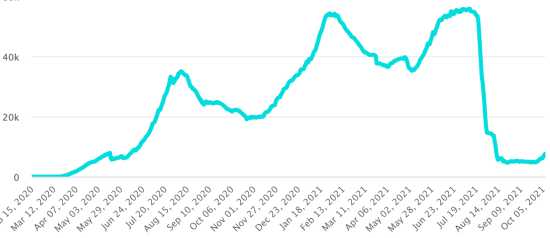 Vaccination: 399.55 million doses of vaccine injected since December 14, 2020, the date of the first injection in the United States (870,000 doses injected, in 24 hours). Update October 7, 2021 (latest data available). DOMINICAN REPUBLIC: Cases confirmed since March 1, 2020: 363,735 cases (+886 in 24 hours) the day before (+745). First case (March 1, 2020) https://www.haitilibre.com/en/news-30165-haiti-flash-first-case-of-covid-19-in-the-dominican-republic.html Healings: 352,073 healings since March 1 (+335 in 24 hours), the day before (+404) National Healing Rate: 96.79% (-) Death: 4,063 deaths (+7 in 24 hours), the day before (+0) Death rate: 1.11% (=) Positivity rate over 4 epidemiological weeks: 8.4% (+) Active cases: (excluding death and recovery) 7,599 cases (+544 in 24 hours) the day before (+342) TOP 5 provinces with the most new cases in the last 24 hours: National District: +149 cases (+) Santiago: +129 cases (+) Santo Domingo: +128 cases (+) Valverde: +54 cases Puerto Plata: +48 cases (-1) Dominican Republic: Trend of active cases: (less healings and deaths)