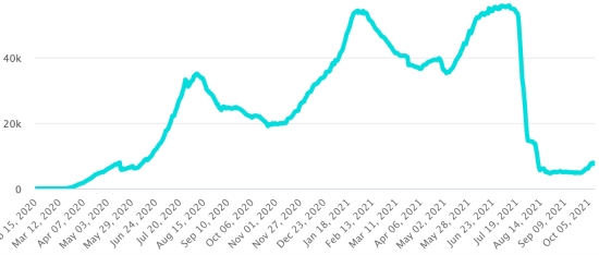 Vaccination: 401.82 million doses of vaccine injected since December 14, 2020, the date of the first injection in the United States (1.15 million doses injected, in 24 hours). Update 9 October 2021 (latest data available). DOMINICAN REPUBLIC: Cases confirmed since March 1, 2020: 366,191 cases (+633 in 24 hours) the day before (+495). First case (March 1, 2020) https://www.haitilibre.com/en/news-30165-haiti-flash-first-case-of-covid-19-in-the-dominican-republic.html Healings: 354,332 healings since March 1 (+351 in 24 hours), the day before (+883) National Healing Rate: 96.76% (+) Death: 4,067 deaths (+0 in 24 hours), the day before (+0) Death rate: 1.11% (=) Positivity rate over 4 epidemiological weeks: 8.9% (=) Active cases: (excluding death and recovery) 7,792 cases (+282 in 24 hours) the day before (+388) TOP 5 provinces with the most new cases in the last 24 hours: National District: +128 cases (+) Santo Domingo: +94 cases (-) Santiago: +78 cases (-) La Romana: +41 cases Peravia: +37 cases Dominican Republic: Trend of active cases: (less healings and deaths)
