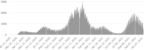 Cases tested since the start of the pandemic: 124,423 cases (+869 in 48 hours) update October 5, 2021 latest data available. Note that the very low number of people tested does not statistically make it possible to make a representative estimate of the active cases of Covid-19 in Haiti. This also explains the low number of cases detected daily. By comparison, the neighboring Republic has more than 2.1million tests on its population since the start of the epidemic. TOP 5 most affected municipalities in the West (2021): Delmas: 2.142 (+27); Pétion ville 1,763 (+6); Port-au-Prince 1,163 (+8); Tabarre 932 (+13); Croix-des-Bouquets 947 (+14) Confirmed cases by department (2021): West: 8,105 cases (2020: 6,945 cases) North: 546 cases (2020: 677 cases) Center: 751 cases (2020: 508 cases) Artibonitis: 638 cases (2020: 593 cases) Northeast: 310 cases (2020: 314 cases) Southeast: 442 cases (2020: 274 cases) South: 625 cases (2020: 262 cases) Northwest: 299 cases (2020: 229 cases) Grand'Anse: 584 cases (2020: 176 cases) Nippes: 187 cases (2020: 149 cases) Cumulative deaths by department (2021): West: 212 deaths (2020: 104 deaths) North: 43 deaths (2020: 34 deaths) Center: 31 deaths (2020: 13 deaths) Artibonitis: 25 deaths (2020: 39 deaths) Northeast: 8 deaths (2020: 6 deaths) South: 35 deaths (2020: 6 deaths) Southeast: 11 deaths (2020: 9 deaths) Northwest: 12 deaths (2020: 12 deaths) Grand'Anse: 5 deaths (2020: 13 deaths) Nippes: 18 deaths (2020: 5 deaths) Distribution of deaths by age (since the start of the epidemic): 0-9 years: 13 deaths 10-19 years: 6 deaths 20-29 years: 24 deaths 30-39 years: 40 deaths 40-49 years: 67 deaths 50-59 years: 108 deaths 60-69 years: 144 deaths (+1) 70-79 years: 140 deaths 80 years and over: 101 deaths (+1) Vaccination: 87,792 (+12,913 in 5 days) doses of “Spikevax” vaccine (official name) from the MODERNA Laboratory have been injected in total in Haiti since July 16, 2021, date of the first injection. 22,432 people are fully vaccinated (2 doses). Update October 7, 2021, latest data available. List of 128 vaccination centers open in Haiti (and hours) by department: (updated October 11, 2021) DIASPORA: Epidemiological situation: USA: * Case since the first case (March 9, 2020): 45,313,353 cases (+10,898 in 24 hours), the day before (+25,164) * Healings: 34,797,165 healings (+132,202 in 24 hours), the day before (+34,309) National Healing Rate: 76.79% (+) * Death: 734,611 deaths (+1,036 in 24 hours), the day before (+517) National death rate: 1.62% (=) * Active cases (less deaths and recoveries): 9,781,577 cases (-24,258), the day before (-9,662) * Tests: 659,963,506 people tested since the first case USA: Number of daily confirmed cases: