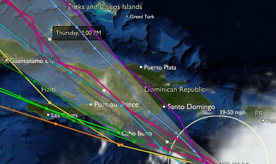 10 of the 12 forecast models plan the passage of Emily on Haiti.