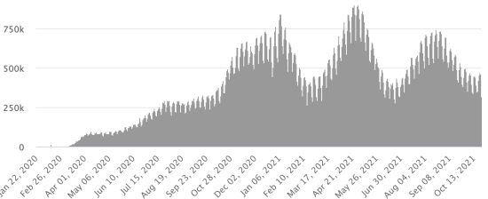 Vaccination: 413.65 million doses of vaccine injected since December 14, 2020, date of the first injection in the United States (790,000 doses injected, in 24 hours). Update 24 October 2021 (last available data). DOMINICAN REPUBLIC: Cases confirmed since March 1, 2020: 376,272 cases (+727 in 24 hours) the day before (+823). First case (March 1, 2020) https://www.haitilibre.com/en/news-30165-haiti-flash-first-case-of-covid-19-in-the-dominican-republic.html Healings: 366,109 healings since March 1 (+960 in 24 hours), the day before (+946) National Healing Rate: 97.29% (+) Death: 4,108 deaths (+2 in 24 hours), the day before (+6) Death rate: 1.09% (=) Positivity rate over 4 epidemiological weeks: 11.47% (+) Active cases: (excluding death and recovery) 6,055 cases (-235 in 24 hours) the day before (-129) TOP 5 provinces with the most new cases in the last 24 hours: Santiago: +89 cases (-) Valverde: +82 cases Puerto Plata: +79 cases Santo Domingo: +71 cases (-) La Altagacia: 60 cases Dominican Republic: Trend of active cases: (less healings and deaths)