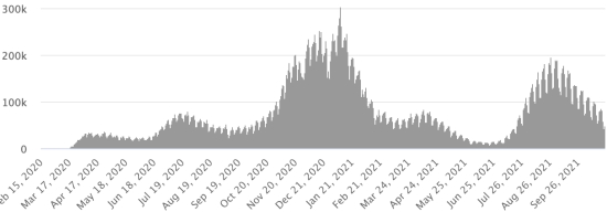 Vaccination: 414.3 million doses of vaccine injected since December 14, 2020, date of the first injection in the United States (650,000 doses injected, in 24 hours). Update 25 October 2021 (latest data available).