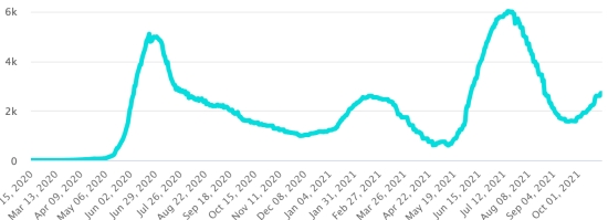 4th wave: The total of the 3rd wave (beginning of September 20, 2021) amounts to 2,190 confirmed cases (+213) and 52 deaths (+0 in 48 hours). Update October 21, 2021. Cases tested since the start of the pandemic: 130,729 cases (+919 in 48 hours) update October 21, 2021 latest data available. Note that the very low number of people tested does not statistically make it possible to make a representative estimate of the active cases of Covid-19 in Haiti. This also explains the low number of cases detected daily. By comparison, the neighboring Republic has carried out more than 2.1million tests on its population since the start of the epidemic. TOP 5 most affected municipalities in the West (2021): Delmas: 2.350 (+38); Pétion ville 1,854 (+15); Port-au-Prince 1,280 (+9); Tabarre 1.017 (+16); Croix-des-Bouquets 1,009 (+10) Confirmed cases by department (2021): West: 8,734 cases (2020: 6,945 cases) North: 586 cases (2020: 677 cases) Center: 820 cases (2020: 508 cases) Artibonitis: 697 cases (2020: 593 cases) Northeast: 346 cases (2020: 314 cases) Southeast: 522 cases (2020: 274 cases) South: 652 cases (2020: 262 cases) Northwest: 327 cases (2020: 229 cases) Grand'Anse: 750 cases (2020: 176 cases) Nippes: 212 cases (2020: 149 cases) Cumulative deaths by department (2021): West: 217 deaths (2020: 104 deaths) North: 45 deaths (2020: 34 deaths) Center: 34 deaths (2020: 13 deaths) Artibonitis: 26 deaths (2020: 39 deaths) Northeast: 6 deaths (2020: 6 deaths) South: 39 deaths (2020: 6 deaths) South-East: 12 deaths (2020: 9 deaths) Northwest: 12 deaths (2020: 12 deaths) Grand'Anse: 7 deaths (2020: 13 deaths) Nippes: 23 deaths (2020: 5 deaths) Distribution of deaths by age (since the start of the epidemic): 0-9 years: 13 deaths 10-19 years: 6 deaths 20-29 years: 25 deaths 30-39 years: 42 deaths 40-49 years: 69 deaths 50-59 years: 110 deaths 60-69 years: 150 deaths 70-79 years: 146 deaths 80 years and over: 101 deaths Vaccination: 118.202 (+22.470 in 13 days) doses of “Spikevax” vaccine (official name) from October 20, Laboratoire MODERNA have been injected in total in Haiti since July 16, 2021, date of the first injection. 31,540 people are fully vaccinated (2 doses). Update 20 October 2021, latest data available. List of 149 vaccination centers open in Haiti (and hours) by department: (update 20 October 2021) DIASPORA: Epidemiological situation: USA: * Case since the first case (March 9, 2020): 46,497,719 cases (+80,194 in 24 hours), the day before (+104,743) * Healings: 36,375,189 healings (+103,862 in 24 hours), the day before (+218,713) National Healing Rate: 78.23% (+) * Deaths: 759,932 deaths (+2,083 in 24 hours), the day before (+1,487) National death rate: 1.63% (=) * Active cases (less deaths and recoveries): 9,362,598 cases (-25,751), the day before (-115,457) * Tests: 692,816,053 people tested since the first case USA: Number of daily confirmed cases: