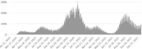 WORLD SITUATION: Epidemiological situation: Saturday, November 13, 2021 the number of people infected worldwide by the Covid-19 coronavirus since the start of the pandemic (Official source), amounts to 253,286,613 cases (+540,320 in 24 hours), the standby (+546,268) Number of contaminated countries: 221 * Healings: 229,071,404 people were cured of Covid-19 worldwide (+405,344 in 24 hours), the day before (+406,610) * Deaths: 5,105,502 people died from Covid-19 around the world (+7,291 in 24 hours), the day before (+8,530) * Active cases (less deaths and recoveries) in the world is currently 19,109,707 cases (+127,685 in 24 hours), the day before (+131,128) Average cure rate in the world: 90.43% (-) Average death rate in the world: 2.01% (=) World: Number of daily confirmed cases: