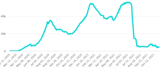 Vaccination: 443.37 million doses of vaccine injected since December 14, 2020, the date of the first injection in the United States (1.36 million doses injected in 24 hours). Update November 16, 2021 (last available data). DOMINICAN REPUBLIC: Cases confirmed since March 1, 2020: 398,018 cases (+1,002 in 24 hours) the day before (+1,160). First case (March 1, 2020) https://www.haitilibre.com/en/news-30165-haiti-flash-first-case-of-covid-19-in-the-dominican-republic.html Healings: 388,999 healings since March 1 (+922 in 24 hours), the day before (+886) National Healing Rate: 97.73% (-) Death: 4,174 deaths (+4 in 24 hours), the day before (+0) Death rate: 1.04% (-) Positivity rate over 4 epidemiological weeks: 10.8% (+) Active cases: (excluding death and recovery) 4,845 cases (+76 in 24 hours) the day before (+274) TOP 5 provinces with the most new cases in the last 24 hours: Nacional District: +205 cases (-) Santo Domingo: +185 cases (-) La Romana: +90 cases Santiago: +70 cases (-) Puerto Plata: +47 cases (-) Dominican Republic: Trend of active cases: (less healings and deaths)