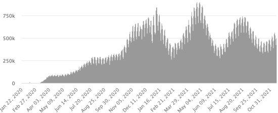Vaccination: 7.56 billion doses of vaccine injected (+20 million doses injected in 24 hours. Update November 16, 2021 (latest data available). HAITI: Epidemiological situation: According to the Ministry of Public Health, +59 new cases in 24 hours of Covid-19 and its variants were confirmed in Haiti on November 11, 2021 (latest partial data available ) for a total of 24,694 cases confirmed throughout the national territory (47.1% women and 52.9% men), since the first case (March 19, 2020 https://www.haitilibre.com/en/news-30319-haiti-health-origin-of-the-first-2-cases-of-covid-19-in-haiti.html). Previous update (+36 cases on November 10). Healings: 20,722 (+19 in 24h) Healing rate: 83.91% (-) Deaths: 711 deaths +3 in 24 hours (West + 3) Death rate: 2.87% (=) Haiti: Trend in deaths: