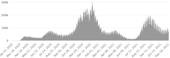 Tests (since the 1st case): 2,346,344 tests (+14,623 in 24 hours), the day before (+13,678) Vaccination: 13.59 million doses of vaccine injected since February 16, 2021, date of the first injection in the Dominican Republic (+20,000 doses injected in 24 hours). Update November 15, 2021 (last available data). QUEBEC: Confirmed cases since the first case (February 27, 2020): 435,366 (+517 in 24 hours), previous (+1,858 in 72 hours) Healings: 418,110 people (+591 in 24 hours), previous (+1,791 in 72 hours) Province of Quebec Healing Rate: 96.03% (+) Deaths: 11,548 deaths (+2 in 24 hours), previous (+11 in 72 hours) Mortality rate: 2.65% (=) Active cases: (excluding death and recovery) 5,708 cases (-76 in 24 hours), previous (+56 in 72 hours) Test: 13,173,083 people tested since the first case (+19,866 in 24 hours) Vaccination: 13,417,482 million doses of vaccine injected since December 16, 2020 date of the first injection (+9,345 in 24 hours), latest data available - MSSS dated November 16, 2021) FRANCE: * Cases confirmed since the first case (January 24, 2020): 7,310,664 cases (+19,778 cases in 24 hours), the day before (+3,241) * Healings: 7,022,023 healings (+6,481 in 24 hours), the day before (+6,516) National Healing Rate: 96.05% (-) Deaths: 118,271 deaths (+47 in 24 hours), the day before in total, (+70) National death rate: 1.61% (-) * Active cases: (excluding death and cures) 170,370 cases (+13,250 in 24 hours), the day before (-3,345) * Tests: 151,204,954 people tested since the first case (no update since October 18, 2021) France: Number of daily confirmed cases: