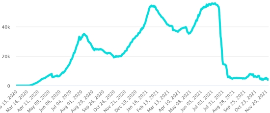 Vaccination: 454.45 million doses of vaccine injected since December 14, 2020, the date of the first injection in the United States (1.75 million doses injected in 24 hours). Update 24 November 2021 (last available data). DOMINICAN REPUBLIC: Cases confirmed since March 1, 2020: 405,513 cases (+759 in 24 hours) the day before (+470). First case (March 1, 2020) https://www.haitilibre.com/en/news-30165-haiti-flash-first-case-of-covid-19-in-the-dominican-republic.html Healings: 396,983 healings since March 1 (+380 in 24 hours), the day before (+468) National Healing Rate: 97.89% (-) Death: 4,197 deaths (+2 in 24 hours), the day before (+1) Death rate: 1.03% (=) Positivity rate over 4 epidemiological weeks: 8.13% (-) Active cases: (excluding death and recovery) 4,333 cases (+377 in 24 hours) the day before (+1) TOP 5 provinces with the most new cases in the last 24 hours: Nacional District: +152 cases (+) Santo Domingo: +108 cases (+) Santiago: +121 cases (+) Espaillat: +57 cases Valverde: +41 cases (-) Dominican Republic: Trend of active cases: (less healings and deaths)