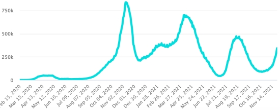 Tests (since the 1st case): 2,438,353 tests (+9,547 in 24 hours), the day before (+13,040) Vaccination: 13.76 million doses of vaccine injected since February 16, 2021, date of the first injection in the Dominican Republic (+20,000 doses injected in 24 hours). Update 25 November 2021 (last available data). QUEBEC: Confirmed cases since the first case (February 27, 2020): 444,585 (+1,037 in 24h), previous (+902) Healings: 425,690 people (+760 in 24 hours), previous (+1,885) Province of Quebec Healing Rate: 95.75% (-) Death: 11,571 deaths (+0 in 24 hours), previous (+5) Mortality rate: 2.60% (=) Active cases: (excluding death and recovery) 7,324 cases (+277 in 24 hours), previous (+344) Test: 13,449,106 people tested since the first case (+31,175 in 24 hours) Vaccination: 13,521,416 million doses of vaccine injected since December 16, 2020 date of the first injection (+19,266 in 24 hours), latest data available - MSSS dated November 26, 2021) FRANCE: * Cases confirmed since the first case (January 24, 2020): 7,551,182 cases (+ 34,436 cases in 24 hours), the day before (+ 33,464) * Healings: 7,090,100 healings (+9.545 in 24 hours), the day before (+8.874) National Healing Rate: 93.89% (-) Deaths: 118,837 deaths (+60 in 24h) National death rate: 1.57% (-) * Active cases: (excluding death and cures) 342,245 cases (+24,831 in 24 hours), the day before (+24,547) * Tests: 162,981,031 people tested since the first case. Update November 26, 2021. Latest data available. France: Trend of active cases: (less healings and deaths)