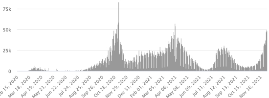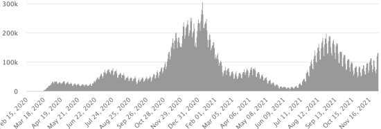 4th wave: The total of the 4th wave (beginning of September 20, 2021) amounts to 3,889 confirmed cases and 136 deaths . Cases tested since the start of the pandemic: 141,839 cases (+502 in 48 hours) latest data available. Note that the very low number of people tested does not statistically make it possible to make a representative estimate of the active cases of Covid-19 in Haiti. This also explains the low number of cases detected daily. By comparison, the neighboring Republic has carried out more than 2.4 million tests on its population since the start of the epidemic. TOP 5 most affected municipalities in the West (2021): Delmas: 2.607 (+15); Pétion ville 2,020 (+7); Port-au-Prince 1,387 (+0); Tabarre 1,170 (+4); Croix-des-Bouquets 1,142 (+4) Confirmed cases by department (2021): West: 9,655 cases (2020: 6,945 cases) North: 660 cases (2020: 677 cases) Center: 987 cases (2020: 508 cases) Artibonitis: 779 cases (2020: 593 cases) Northeast: 360 cases (2020: 314 cases) Southeast: 645 cases (2020: 274 cases) South: 714 cases (2020: 262 cases) Northwest: 385 cases (2020: 229 cases) Grand'Anse: 812 cases (2020: 176 cases) Nippes: 227 cases (2020: 149 cases) Cumulative deaths by department (2021): West: 254 deaths (2020: 104 deaths) North: 53 deaths (2020: 34 deaths) Center: 52 deaths (2020: 13 deaths) Artibonitis: 35 deaths (2020: 39 deaths) Northeast: 6 deaths (2020: 6 deaths) South: 46 deaths (2020: 6 deaths) Southeast: 13 deaths (2020: 9 deaths) Northwest: 15 deaths (2020: 12 deaths) Grand'Anse: 7 deaths (2020: 13 deaths) Nippes: 24 deaths (2020: 5 deaths) Distribution of deaths by age (since the start of the epidemic): 0-9 years: 13 deaths 10-19 years: 8 deaths (+1) 20-29 years: 25 deaths 30-39 years: 48 deaths 40-49 years: 75 deaths (+1) 50-59 years: 118 deaths (+2) 60-69 years: 172 deaths (+1) 70-79 years: 165 deaths (+2) 80 years and over: 122 deaths (+1) Vaccination: 153.182 (+17.926 in 20 days) doses of “Spikevax” vaccine from the MODERNA Laboratory have been injected in total in Haiti since July 16, 2021, date of the first injection. Update 20 November 2021, last information available. 68,888 people are fully vaccinated (2 doses). Update 20 November 2021, latest data available. List of 149 vaccination centers open in Haiti (and hours) by department: (update 20 October 2021) DIASPORA: Epidemiological situation: USA: * Case since the first case (March 9, 2020): 49,716,825 cases (+143,703 in 24 hours), the day before (+144,209) * Healings: 39,389,646 healings (+71,083 in 24 hours), the day before (+112,661) National Healing Rate: 79.22% (-) * Death: 806,398 deaths (+1.394 in 24 hours), the day before (+1.959) National death rate: 1.62% (=) * Active cases (less deaths and recoveries): 9,520,781 cases (+71,226 in 24 hours), the day before (+29,589) Test: 757,565,059 (since the 1st case of Covid-19 confirmed on February 29, 2020), latest data available. USA: Number of daily confirmed cases: (less recoveries and deaths)