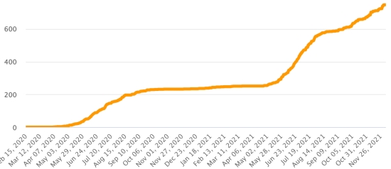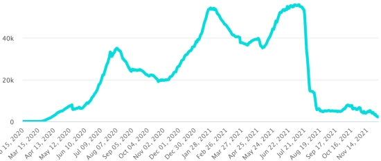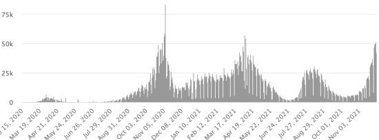 4th wave: The total of the 4th wave (beginning of September 20, 2021) amounts to 4,116 confirmed cases and 137 deaths . Cases tested since the start of the pandemic: 143,892 cases (+738 in 24 hours) latest data available. Note that the very low number of people tested does not statistically make it possible to make a representative estimate of the active cases of Covid-19 in Haiti. This also explains the low number of cases detected daily. By comparison, the neighboring Republic has carried out more than 2.4 million tests on its population since the start of the epidemic. TOP 5 most affected municipalities in the West (2021): Delmas: 2.626 (+2); Pétion ville 2,027 (+0); Port-au-Prince 1,399 (+4); Tabarre 1,175 (+0); Croix-des-Bouquets 1,151 (+3) Confirmed cases by department (2021): West: 9,717 (2020: 6,945 cases) North: 667 cases (2020: 677 cases) Center: 988 cases (2020: 508 cases) Artibonitis: 781 cases (2020: 593 cases) Northeast: 369 cases (2020: 314 cases) Southeast: 701 cases (2020: 274 cases) South: 779 cases (2020: 262 cases) Northwest: 398 cases (2020: 229 cases) Grand'Anse: 820 cases (2020: 176 cases) Nippes: 229 cases (2020: 149 cases) Cumulative deaths by department (2021): West: 255 deaths (2020: 104 deaths) North: 53 deaths (2020: 34 deaths) Center: 52 deaths (2020: 13 deaths) Artibonitis: 35 deaths (2020: 39 deaths) Northeast: 6 deaths (2020: 6 deaths) South: 46 deaths (2020: 6 deaths) Southeast: 13 deaths (2020: 9 deaths) Northwest: 15 deaths (2020: 12 deaths) Grand'Anse: 7 deaths (2020: 13 deaths) Nippes: 24 deaths (2020: 5 deaths) Distribution of deaths by age (since the start of the epidemic): 0-9 years: 13 deaths 10-19 years: 8 death 20-29 years: 25 deaths 30-39 years: 48 deaths 40-49 years: 75 deaths 50-59 years: 118 deaths 60-69 years: 172 deaths 70-79 years: 165 deaths 80 years and over: 123 deaths Vaccination: 153.182 (+17.926 in 20 days) doses of “Spikevax” vaccine from the MODERNA Laboratory have been injected in total in Haiti since July 16, 2021, date of the first injection. Update 20 November 2021, last information available. 68,888 people are fully vaccinated (2 doses). Update 20 November 2021, latest data available. List of 149 vaccination centers open in Haiti (and hours) by department: (update 20 October 2021) DIASPORA: Epidemiological situation: USA: * Case since the first case (February 29, 2020): 49,969,856 cases (+35,065 in 24 hours), the day before (+56,742) * Healings: 39,523,573 healings (+25,462 in 24 hours), the day before (+34,866) National Healing Rate: 79.09% (=) * Death: 808,763 deaths (+155 in 24 hours), the day before (+492) National death rate: 1.61% (=) * Active cases (less deaths and recoveries): 9,637,520 cases (+9,448 in 24 hours), the day before (+21,384) Test: 760,636,842 last available data. USA: Trend of active cases: (less healings and deaths)